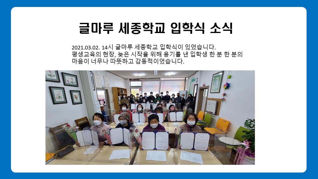 | 글마루 세종학교 입학식 (0) | 2021.03.03 |